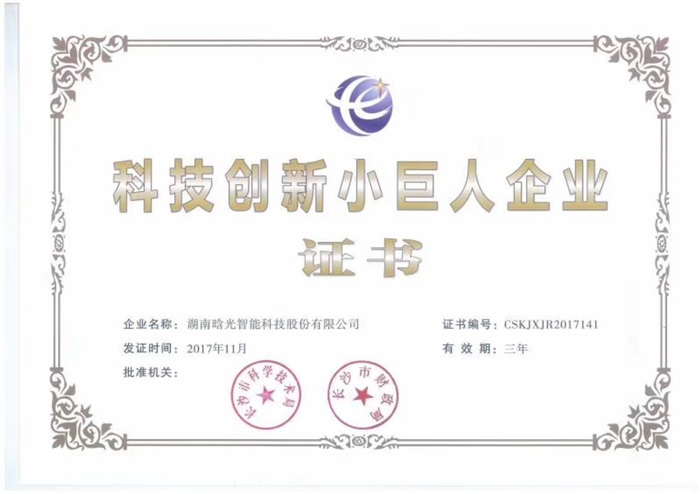 11月8日,湖南晗光智能科技股份有限公司獲長沙市科學(xué)技術(shù)局和長沙市財政局聯(lián)合頒發(fā)的“科技創(chuàng)新小巨人企業(yè)”稱號!